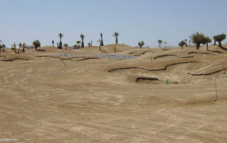 Redes Secundarias de drenaje: Constituyen aquellas canalizaciones de menor diámetro y que su ejecución debe de ser realizada posteriormente al movimiento de tierras. Su dimensionamiento se fundamenta en el cálculo hidrológico general y viene definido por las pendientes de diseño de los colectores, conduce las aguas sobrantes procedentes de los fairways, rough, bunkers, tees y greens a la red principal de drenaje para su evacuación o recuperación. En los planos se define en planta su trazado, los diámetros y las pendientes propuestas y en el cálculo, el caudal máximo desaguado y la velocidad de tránsito de cada colector.